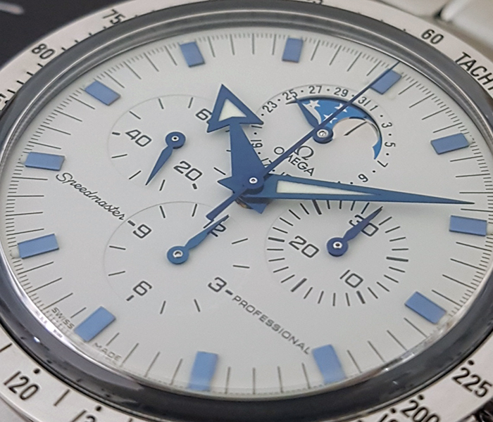 Omega Speedmaster Professional Moonphase Steel and 18K White Gold Wristwatch Ref. 3575.20